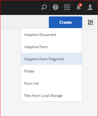 - Select create adaptive form fragment from form console